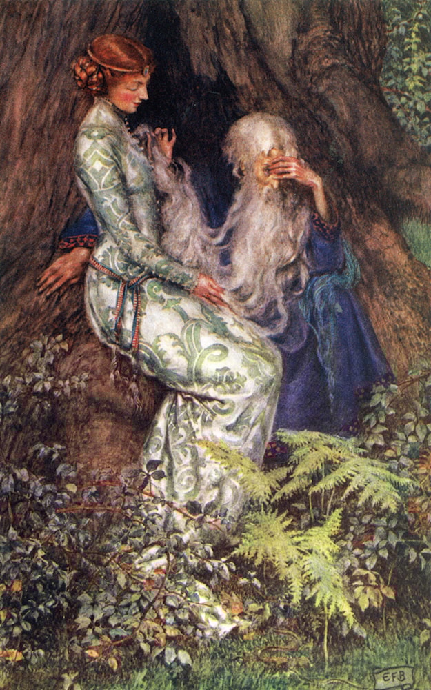 In Malory, Merlin is Arthur’s mentor, instrumental in every aspect of his life from his conception to his education, his rise to power, and his vision of a kingdom ruled through justice and goodwill. Merlin is central to the lives of all the main characters of the legend, able to see both past and future, eager to advise and be of service, but unable to alter what he knows must be.