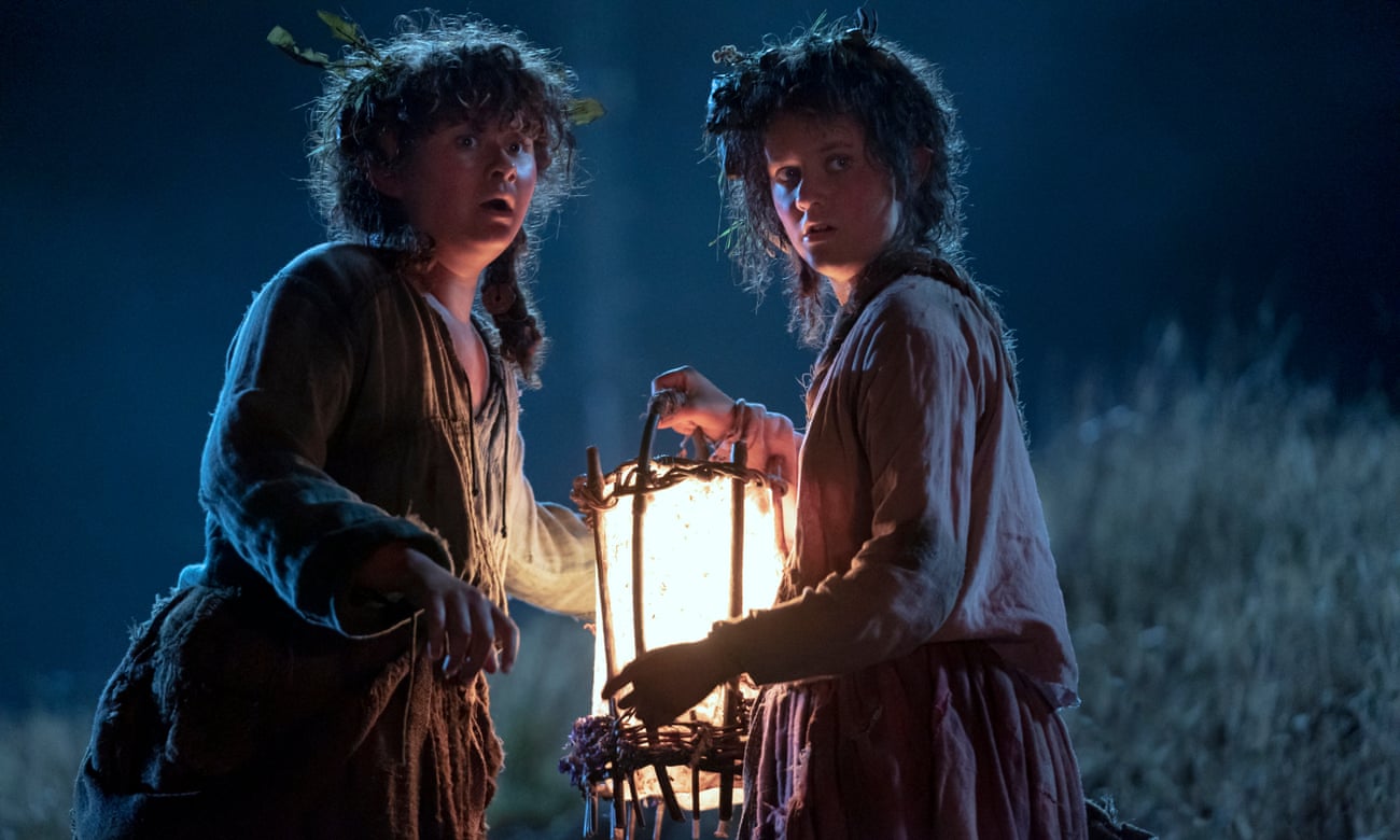 The Harfoots are the show’s biggest innovation and most charming element. Tolkien is silent regarding Hobbits in the Second Age. The showrunners depict Harfoots as nomadic precursors to the Shire-dwelling Hobbits we know, a close-knit band of small-statured travelers specializing in camouflage. In a delightful introductory scene, the Harfoots and their entire settlement emerge from behind cleverly constructed screens and covers made of foliage. The idea seems to be that the history of the Second Age has no record of Hobbits because they were just that good at hiding.